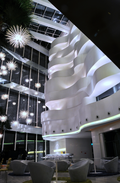 Designed by PAL Design Consultants, Oasis Club aims to be a haven for relaxation and rejuvenation for the people of the Chinese city of Chengdu. The city is known as “China‘s Party City” because of its growing numbers of bars and pubs, at times outgrowing Shanghai. Oasis Club is a private membership club mixes up contemporary suites of privacy, utter luxury, modernism and a sense of being in a universe theme park.