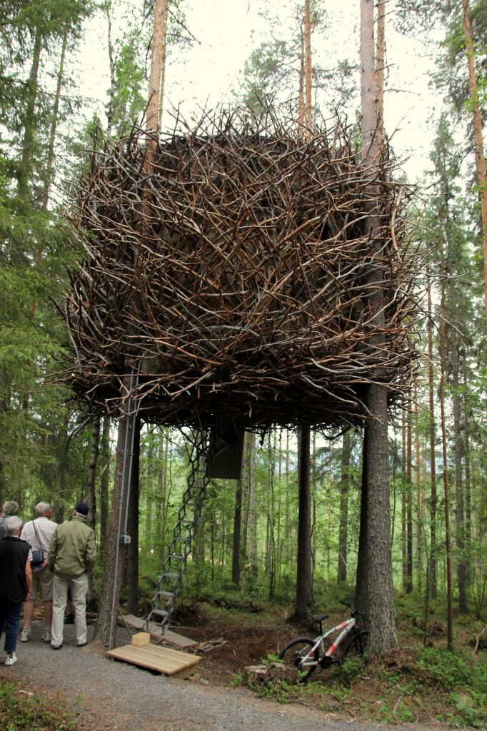 In the forest in the tiny village of Harads, in municipality of Boden, far north of Sweden, one stunning tree hotel is located. Designed by Inredningsgruppen it resembles - what else - a bird’s nest. The hotel combine innovative modern design with ecological thinking in order to find new ways of valuing the vast Swedish forest. Opened in July, 2010, the Bird’s Nest consists of only six “rooms” each designed by a different architect to be completely unique. Each independent of the others, six different nests, each with its distinctive feature and its architecture.