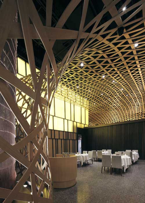 The Tang Palace Restaurant is a stunning contemporary restaurant designed by Beijing-based design firm FCJC. It is located in the new town area of Hangzhou, China. If you like bamboo-covered interiors, then this is the ideal place to go for great food and a creative atmosphere.
