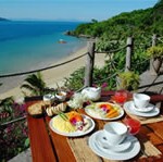 Le TK Restaurant is located in the Tsara Komba Lodge, Madagascar. Perched on a hill overlooking the Indian Ocean, it offers splendid panoramic view of the bay and Madagascar’s Grande Terre Island. At lunchtime you often see fishermen paddling their dugouts past the beach. The cuisine served in the restaurant blends Eastern and Western spices and flavours and fish and fresh local produce take pride of place. All the products are exclusively bio.