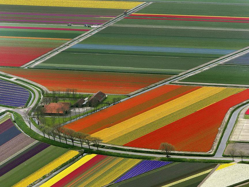 The Netherlands is renowned as the land of tulips and there is no better time of year to visit the flower fields than spring, when the bulbs are in full bloom. See the spectacular colors of more than 7 million tulips in bloom. Just a few miles from the hustle and bustle of Amsterdam, the land is carpeted with mile upon mile of fields of gladioli, hyacinths, lilies, narcissi, daffodils, crocuses, irises, dahlias and, of course, the mighty tulip. Hundreds of thousands of tulips in field after field in different colours makes an awesome view. If you love flowers you won’t believe the colourful display of tulips.