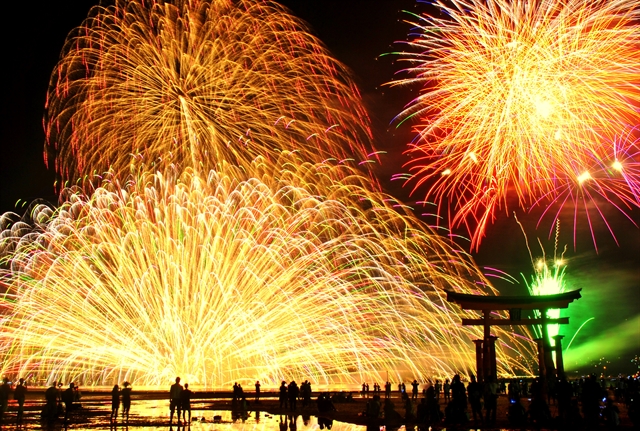 Japanese fireworks are without doubt an elaborate and magnificent art and one of the most spectacular in the whole world. The Miyajima Water Fireworks Festival held on August 14 every year in Miyajima, which is a UNESCO World Heritage Site. Attracts over 300,000 visitors and thousands of photo enthusiasts and presents seven spectacular scenes, the festival is one of the most famous in Japan.